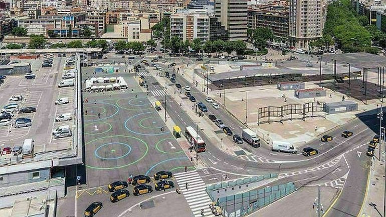 L’actual estació d’autobusos acabarà desapareixent de la seva ubicació actual i es traslladarà a plaça d’Espanya-Avinguda Maria Cristina. En el seu lloc s’obrirà una nova zona verda. El projecte preveu que el trànsit rodat, tant en sentit Eixample com en sentit Sants, transcorri per la banda sud de l’Estació, al costat del parc de l’Espanya Industrial. La filera de taxis a disposició dels passatgers de l’estació s’ubicarà en el subsol.