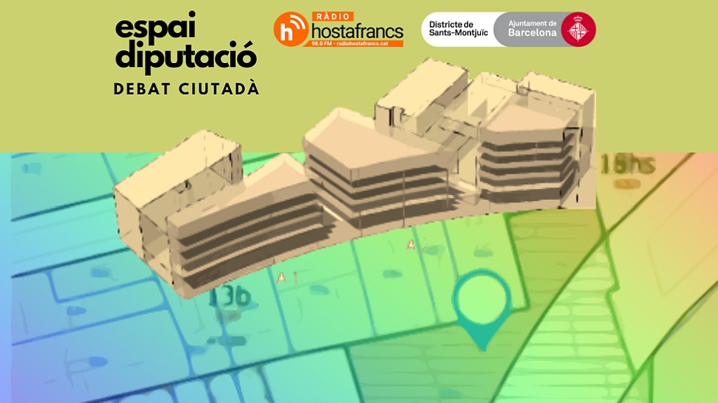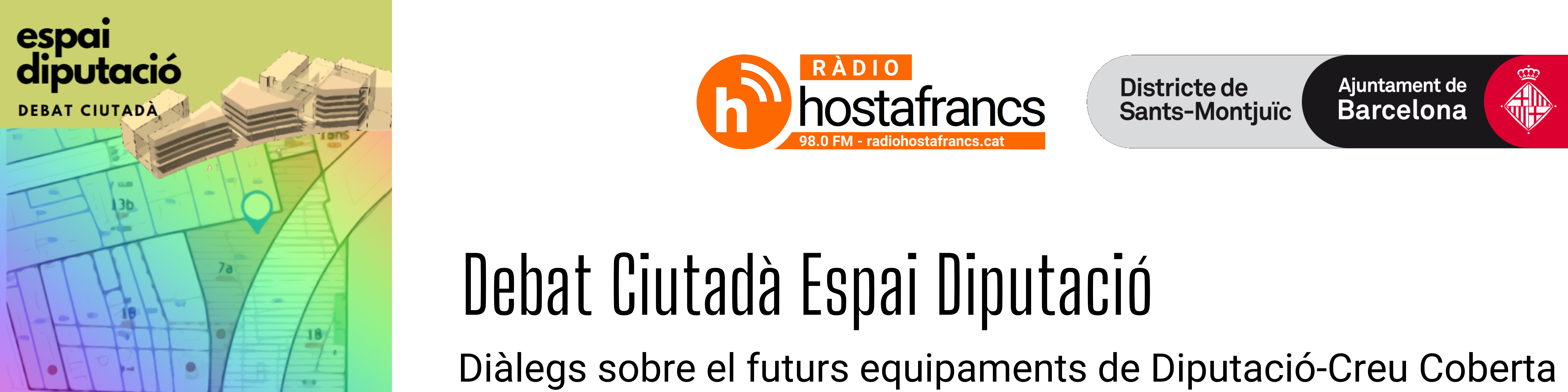 El Debat Ciutadà Espai Diputació, el cicle organitzat per Ràdio Hostafrancs amb el suport del Districte de Sants-Montjuïc per recollir propostes i opinions sobre el futur complex d’equipaments comunitaris que ha de construir l’Ajuntament a l’actual Meeting Point, culmina aquest dissabte 18 de març amb un debat en el qual participaran representants de tots els grups municipals del Consell de Districte de Sants-Montjuïc. Serà l’última de les sessions del cicle, que tindrà lloc a unes carpes instal·lades especialment al carrer de la Creu Coberta que -com cada cap de setmana d’Obrim Carrers- estarà reservat per a vianants, sense circulació de vehicles a motor.