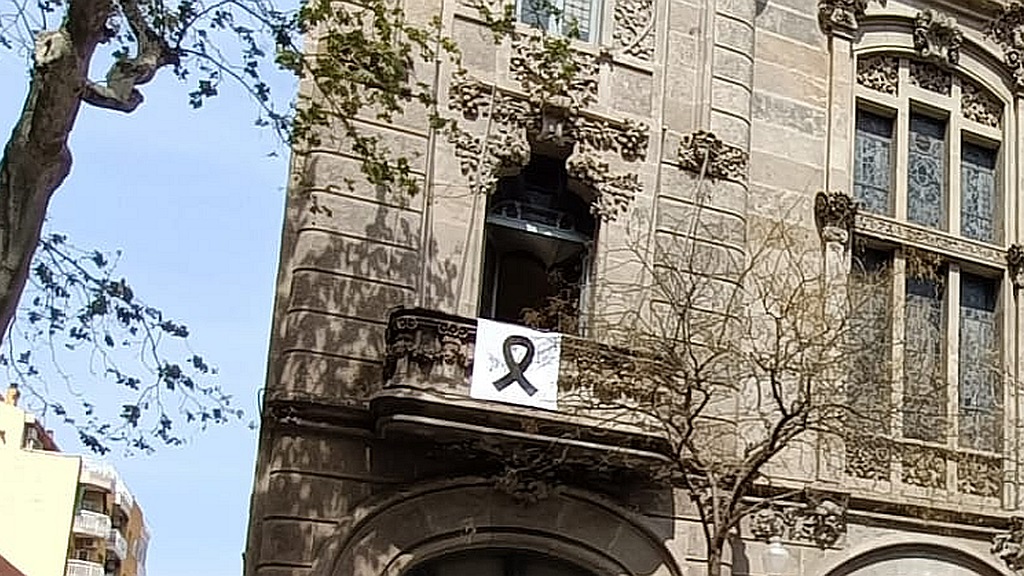 2. Penjar un crespó negre al balcó de la Seu del Districte
