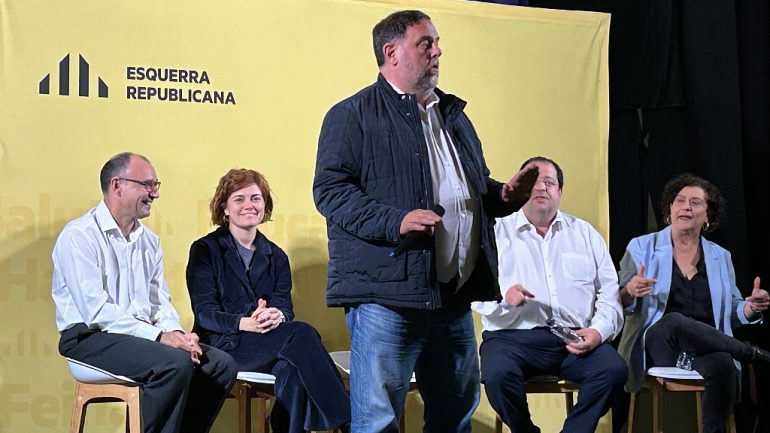 Esquerra Republicana de Catalunya va fer campanya aquest dilluns 29 d’abril a Sants-Montjuïc. El president dels republicans, Oriol Junqueras; el conseller d’Interior, Joan Ignasi Elena; la diputada al Congrés Pilar Vallugera; la presidenta del grup municipal a l’Ajuntament, Elisenda Alamany i Quim Bosch, de l’executiva local d’ERC a Sants-Montjuïc, van ser els protagonistes d’un míting que es va fer a la sala d’actes d’una escola de Sants. Els diferents oradors van destacar l’obra de govern d’ERC, en àmbits com la regulació dels lloguers, l’augment de mestres i professors al sistema educatiu o l’increment de la plantilla de mossos. No hi van faltat crítiques al PSC i a Pedro Sánchez, als que acusen de manca d’empatia amb els independentistes que pateixen ‘lawfare’ i per l’episodi de cinc dies amb tothom pendent d’una possible dimissió del cap del govern espanyol. En declaracions a Ràdio Hostafrancs Oriol Junqueras va dir que “Pedro Sánchez ha fet electoralisme” i el va acusar de “no haver tingut mai amb ningú l’empatia que ell demana”, en referència als seus socis de Podem, a Mònica Oltra de Compromís, o als independentistes catalans.