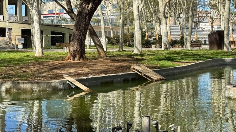 Veïns de la zona han alertat l’Ajuntament sobre aquesta situació i han posat, de manera precària, algunes taules de fusta perquè actuïn com a rampes que facilitin la sortida de l’aigua dels ànecs més petits. Els mateixos veïns van fer una consulta a professionals d’una clínica veterinària del barri que van constatar les males condicions que pateixen aquests animals.