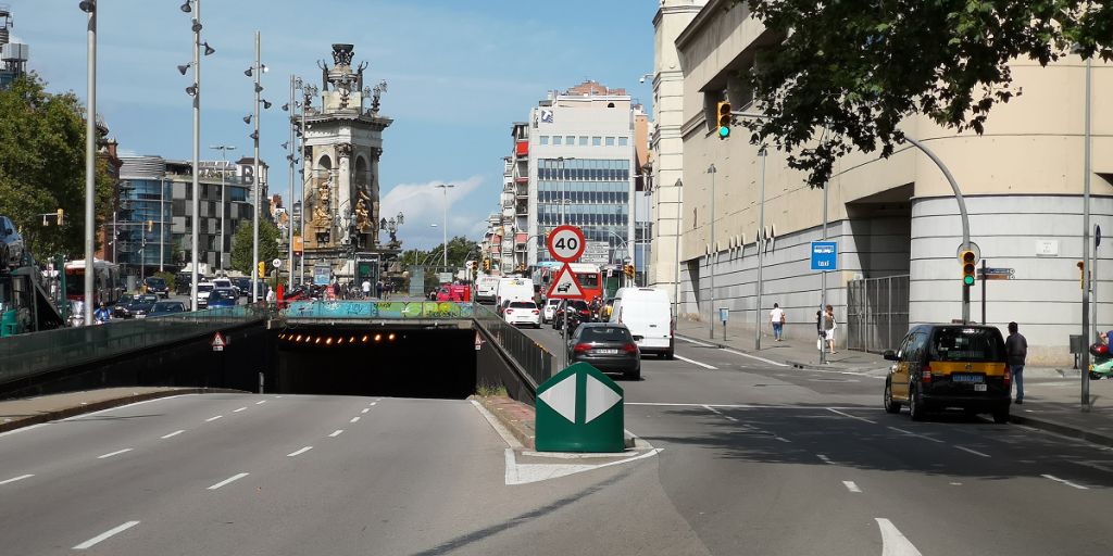 Pavimentació del túnel de la plaça d’Espanya Durant el cap de setmana del 17 i 18 d’agost el trànsit es desvia pel lateral fins a passar la plaça