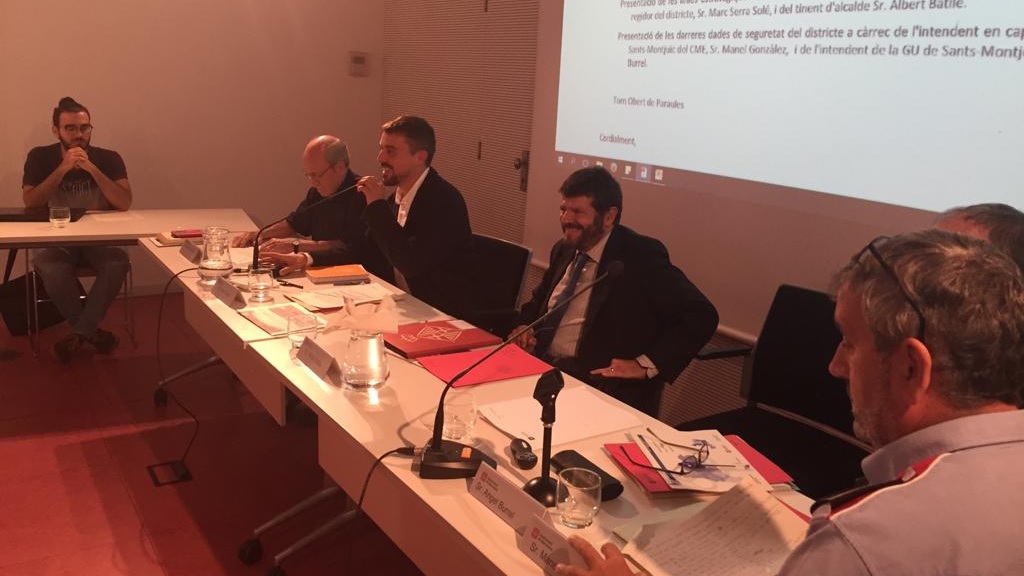 Assistència massiva i molta participació de representants de les entitats dels barris de Sants-Montjuïc en la primera reunió del Consell de Presidència, Règim Interior, Seguretat i Mobilitat del nou mandat municipal que ha tingut lloc aquest dilluns 16 de setembre. Era el primer contacte en públic del tinent d’alcalde de Prevenció i Seguretat, Albert Batlle, amb el teixit associatiu del barri queixós i alarmat per l’augment dels robatoris, furts i actes d’incivisme registrat en els darrers mesos.