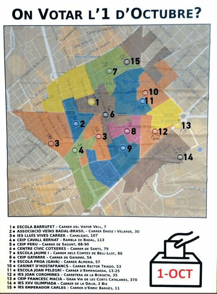Al Barri d’Hostafrancs els col·legis electorals d’aquest diumenge són el Casinet d’Hostafrancs, al carrer Rector Triadó; l’Escola Joan Pelegrí, al carrer d’Ermengarda; l’institut de secundària Joan Coromines, de la carretera de la Bordeta, i l’escola Francesc Macià, de Gran Via – Plaça Espanya. També hi ha centres de votació a carrers molt propers al barri.