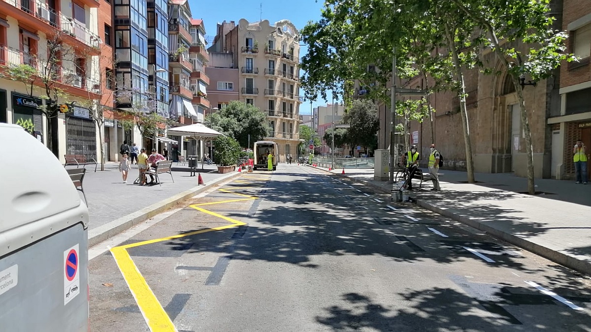 Creu Coberta estrena el carril bus-bici i disposa de càrrega i descàrrega a carrers adjacents