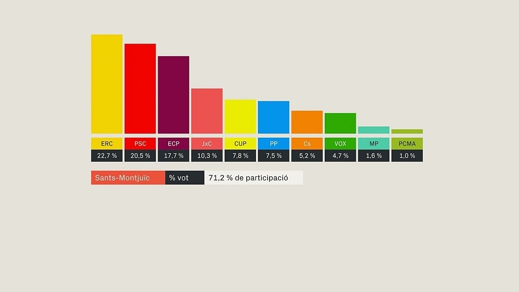 Esquerra ha guanyat les eleccions del 10-N al Districte de Sants-Montjuïc La segona força és el PSC, dos punts per sota dels republicans. En Comú Podem manté la tercera posició