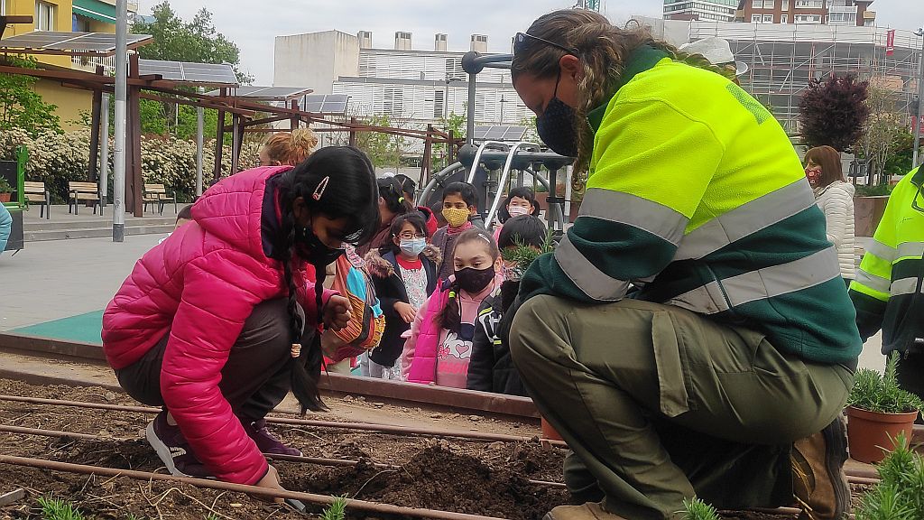 Escoles d’Hostafrancs planten amb els jardiners municipals