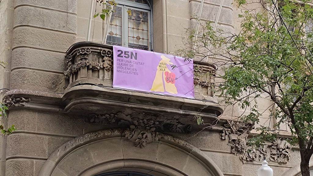 L'edifici de l'Alcaldia llueix aquest dimarts la lona del 25-N i l'il·lumina de color lila. A les 18.30h, manifestació des de la plaça de la Universitat